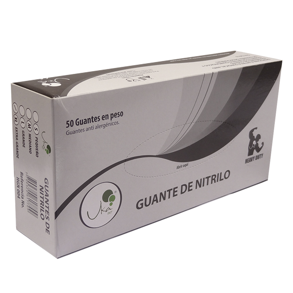 Guantes de Nitrilo HD Calibre 18 Uka Int / Caja x 50 unidades ( 25 pares ) — Guantes profesionales de alta resistencia fabricados en caucho de nitrilo 100% libre de látex, sin talco y no estériles. Diseñados para brindar máxima protección, durabilidad y confort en trabajos exigentes de laboratorio, industria, estética, limpieza y manipulación de alimentos.