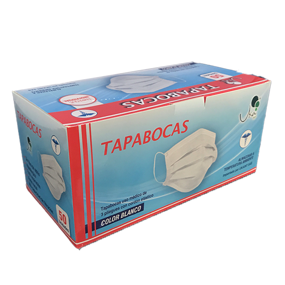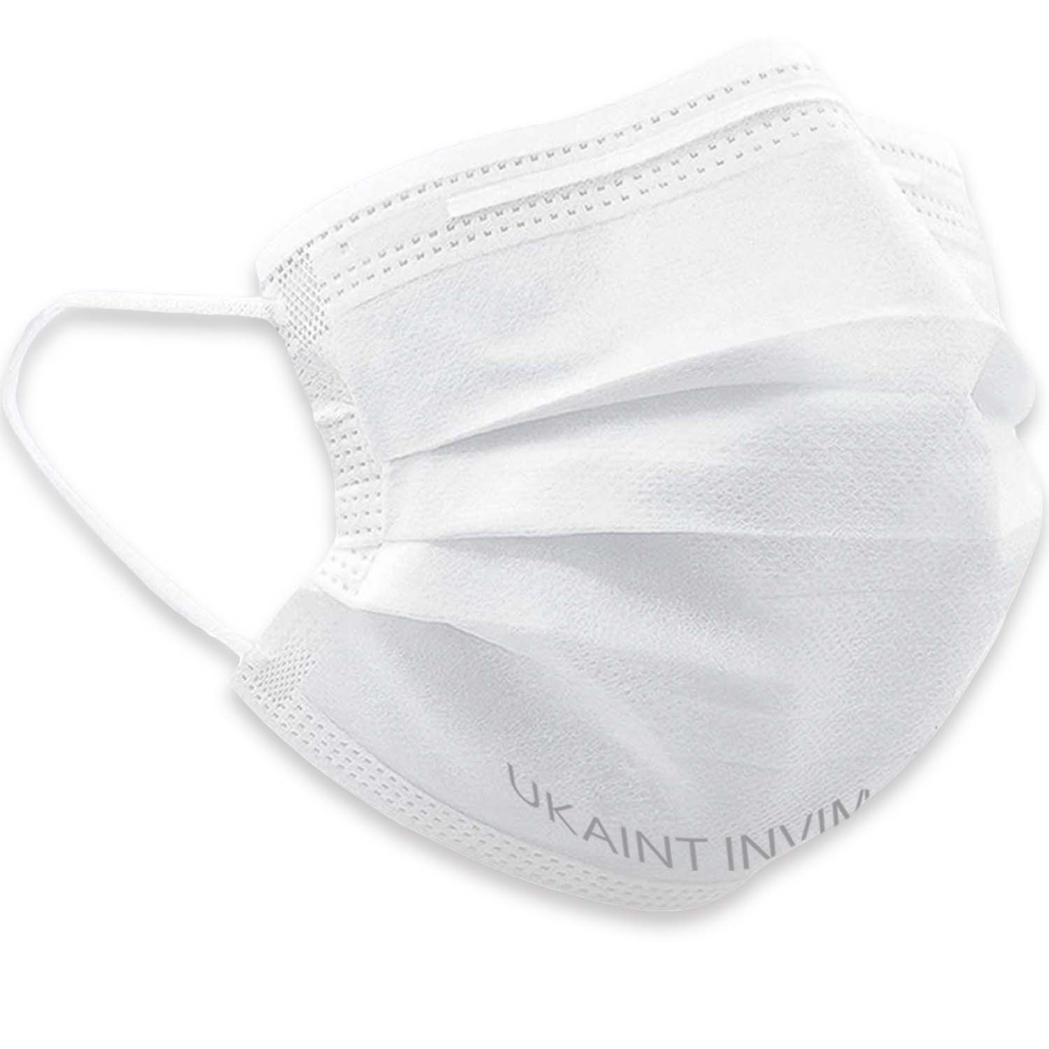 Tapabocas blanco con empaque individual Uka Int x50 — 3 capas de protección, registro INVIMA y empaques individuales. Alta filtración BFE > 98%.